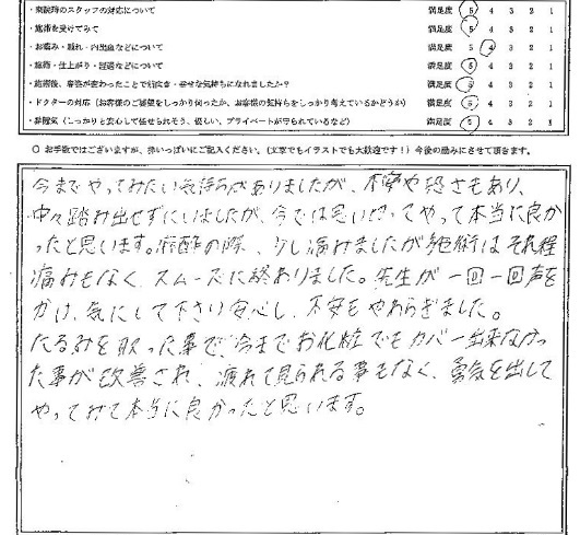 施術を受けていただいた方のアンケートを紹介します。