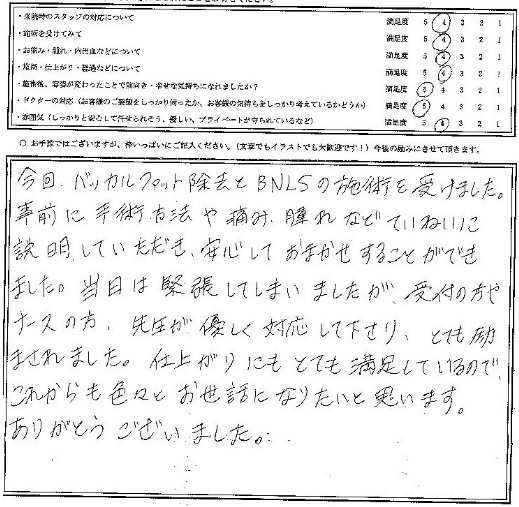 事前に手術方法や痛み、腫れなど丁寧に説明いただき、安心してお任せすることが出来ました。