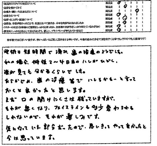 施術を受けていただいた方のアンケートを紹介します。