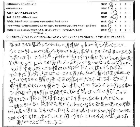 施術を受けていただいた方のアンケートを紹介します。
