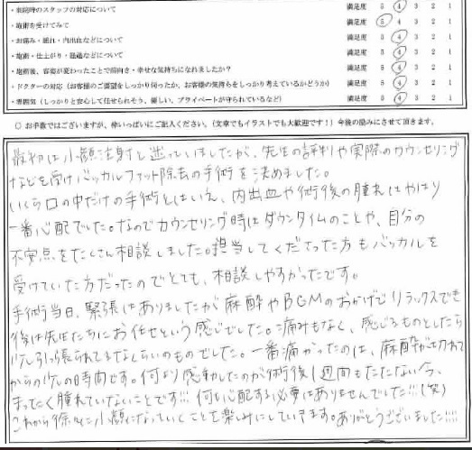 手術当日、緊張はありましたが、麻酔やBGMのおかげで、リラックスでき、後は先生たちにお任せとい
