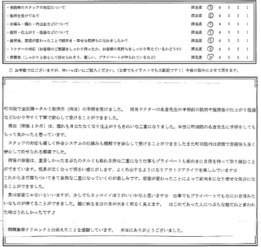町田院で全切開+タルミ取併用 (両目) の手術を受けました。