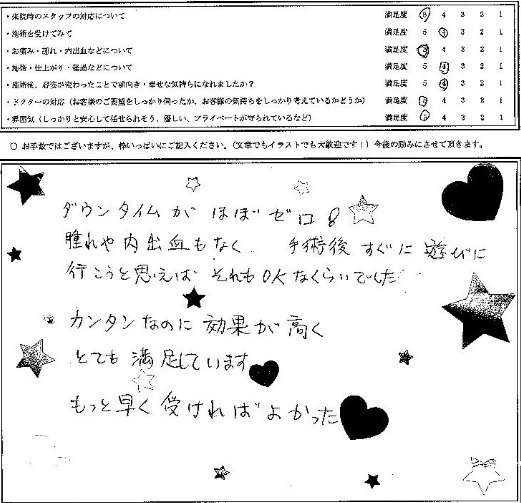 腫れや内出血もなく、手術後すぐに遊びに行こうと思えばそれも