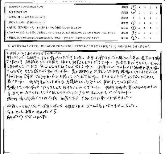 施術を受けていただいた方のアンケートを紹介します。