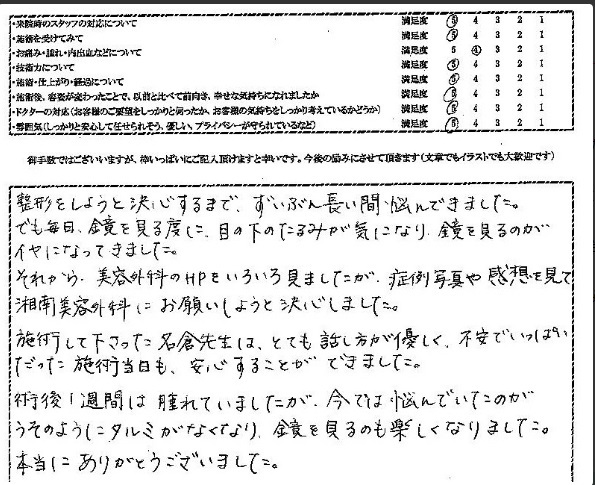 それから美容外科のHPを色々見ましたが、症例写真や感想を見て、湘南美容外科にお願いしようと決心しました。