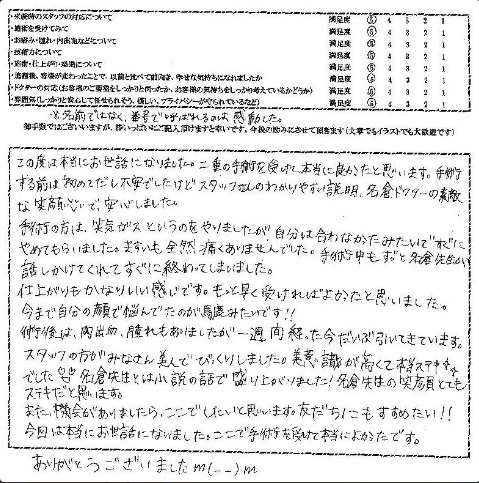 今回は本当にお世話になりました。ここで手術を受けて本当に良かったです。ありがとうございましたm(__)m