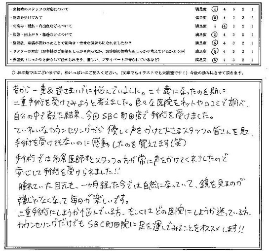 色々な医院をネットや口コミで調べ、自分の中で考えた結果、今回SBC町田店で手術を受けました。