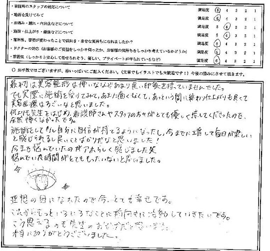 施術をして少し自分に自信が持てるようになったし、今までに増して毎日が楽しいと感じられるし良いことばかりだなと思いました!