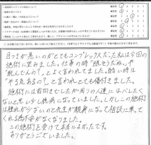 目付きが悪いのがとてもコンプレックスだった私は今回の施術に望みました。