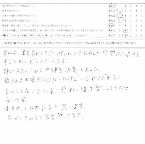 最初は不安だらけだったけど、いざやりおわると、なんもしないで二重に感動し、毎日が楽しくてしかたないです。