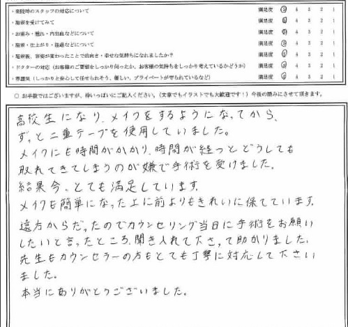 メイクにも時間がかかり時間が経つとどうしても取れてきてしまうのが嫌で手術を受けました。