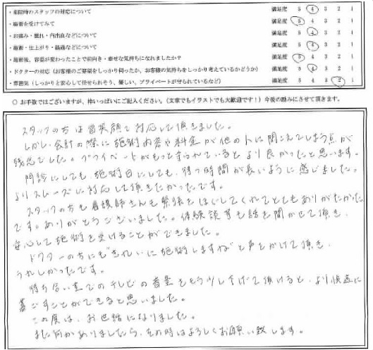 名倉ドクターの方にも ” きれいに施術しますね ”と声をかけて頂き、うれしかったです。