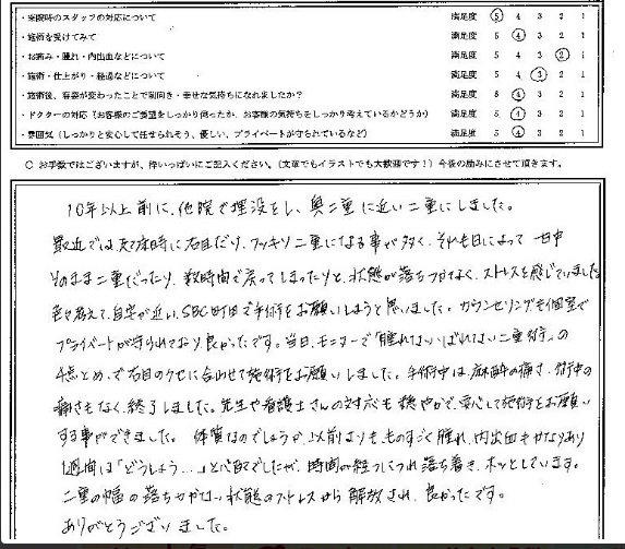 名倉先生や看護師さんの対応も穏やかで、安心して施術をお願いすることが出来ました。