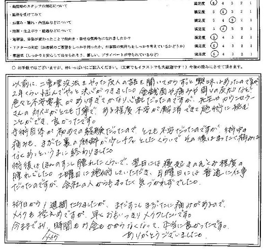 施術を受けていただいた方のアンケートを紹介します。