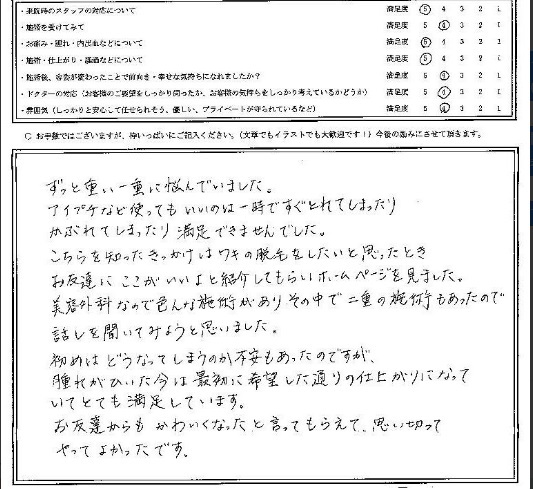 美容外科なので色んな施術があり、その中で二重の施術もあったので、話しを聞いてみようと思いました。