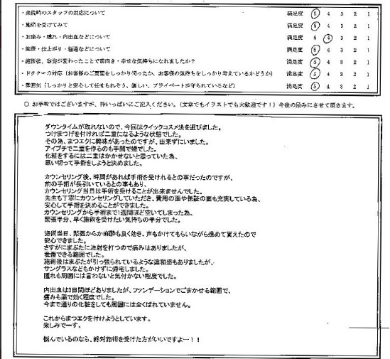 でも、長い間(目の下のたるみ)は自分との戦いで、いつかは手術したいと思っていたので、術後の経過が少しでもわかり、不安と恐怖はマックスでしたが覚悟を決めました。