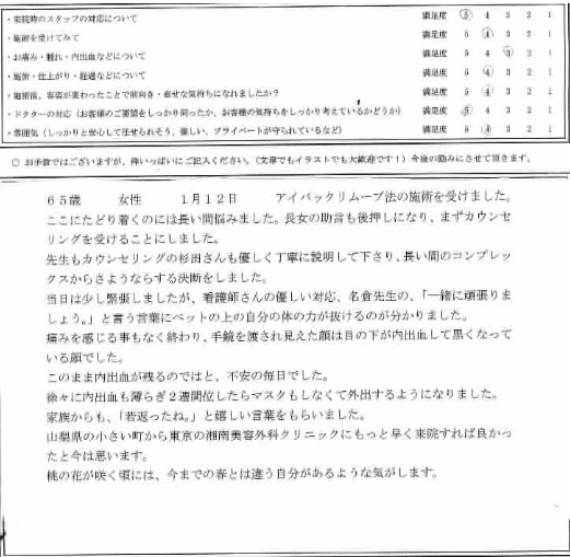 山梨県の小さい町から東京の湘南美容外科クリニックにもっと早く来院すれば良かったと今は思います。