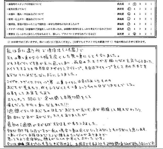 私は前に違う所で埋没法(2点留)で元々の奥二重から少し幅を広くした奥二重にしてもらいました。