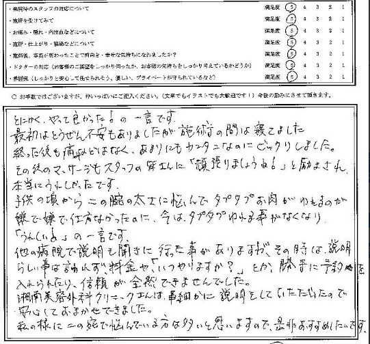 湘南美容外科クリニックさんは、事細かに説明をしていただいたので、安心してお任せできました。