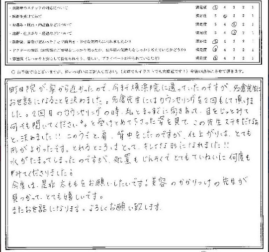 町田院が家から近かったので、今まで横浜院に通っていたのですが、名倉先生にお世話になることを決めました。