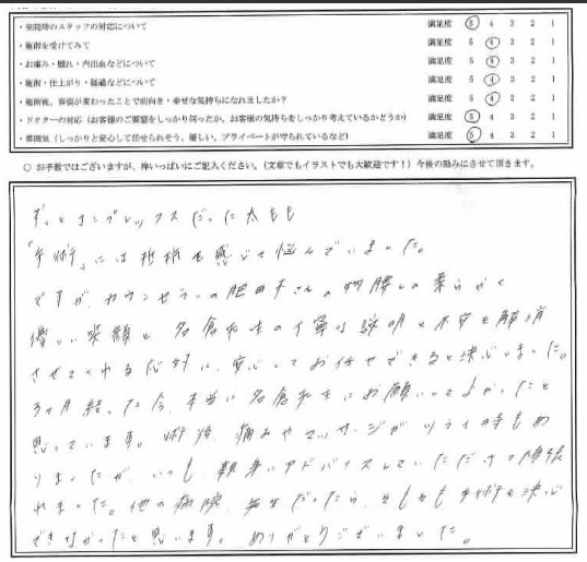 他の病院先生だったら、そもそも手術を決心できなかったと思います。