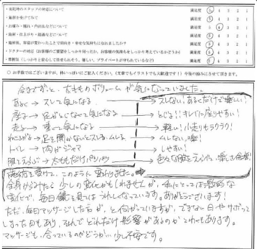 今までずっと、太もものボリュームが気になっていました。施術を受けて、このように変わりました。