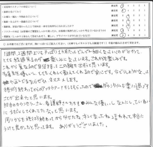 周りからも 施術終わってから、「やせたね、キレイになったね」と言われて、本当に受けて良かっ