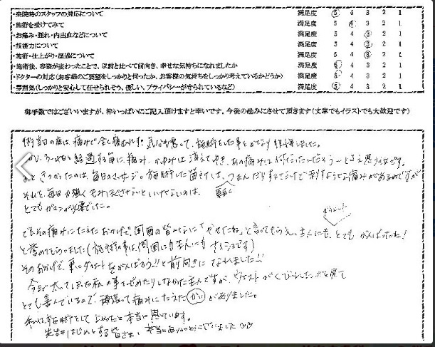 施術を受けていただいた方のアンケートを紹介します。
