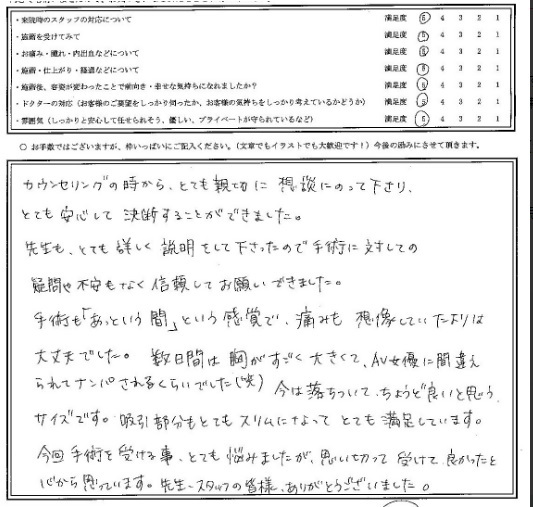 カウンセリングの時から、とても親切に相談にのって下さり、とても安心して決断することができました。