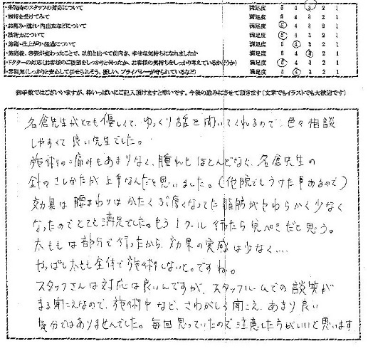 施術を受けていただいた方のアンケートを紹介します。