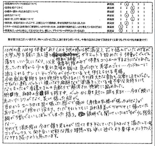 満足感は今まで鏡を見るのが怖くて目をそらしていた私の心を満たしています。コンプレックスと向き合い、可能な限り理想とする姿に近づくよう、身体のメンテナンスなケアを続けようと思っています。