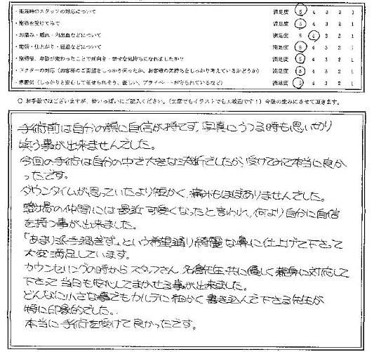 「あまり派手過ぎず」という希望通り、綺麗な鼻に仕上げて下さって、大変満足しています。