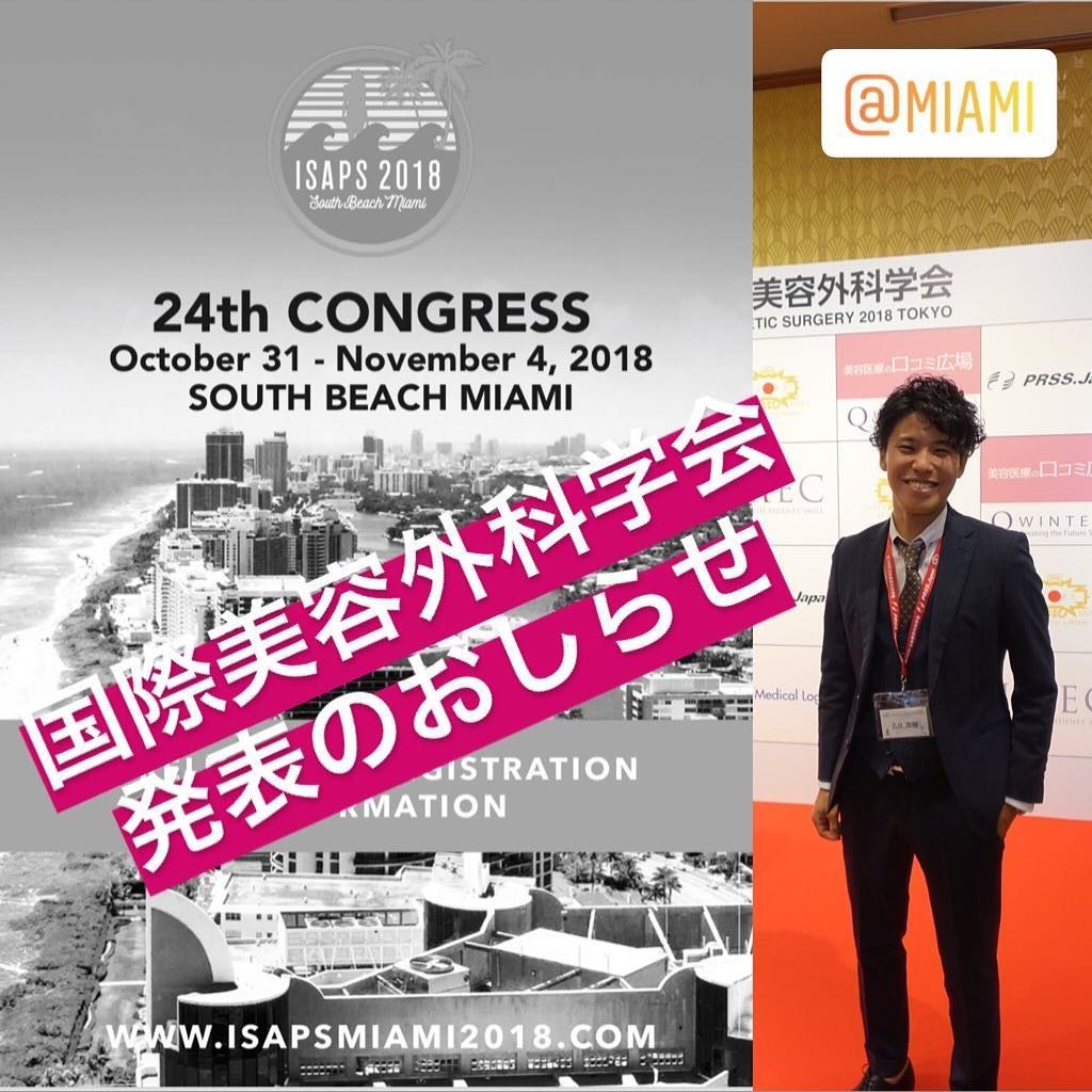 【国際学会に伴う休診のおしらせ】10月末から11月のISAPS(国際美容外科学会)でバッカルファット.小顔治療.若返り治療について発表をしてきます.10月28日から手術のご依頼を受けることはできませんが美容医療の発展に貢献させて下さい.最近はバッカルファットを行う医師が増えてきましたが残念ながら正しい知識や技術を持った方ばかりではありませんのでこういった活動も大切と考えております。.今回は日本の裏側にあるアメリカのMiamiで開かれますので休みが長くなり申し訳ありません!学会の様子などはインスタでお伝えいたします️